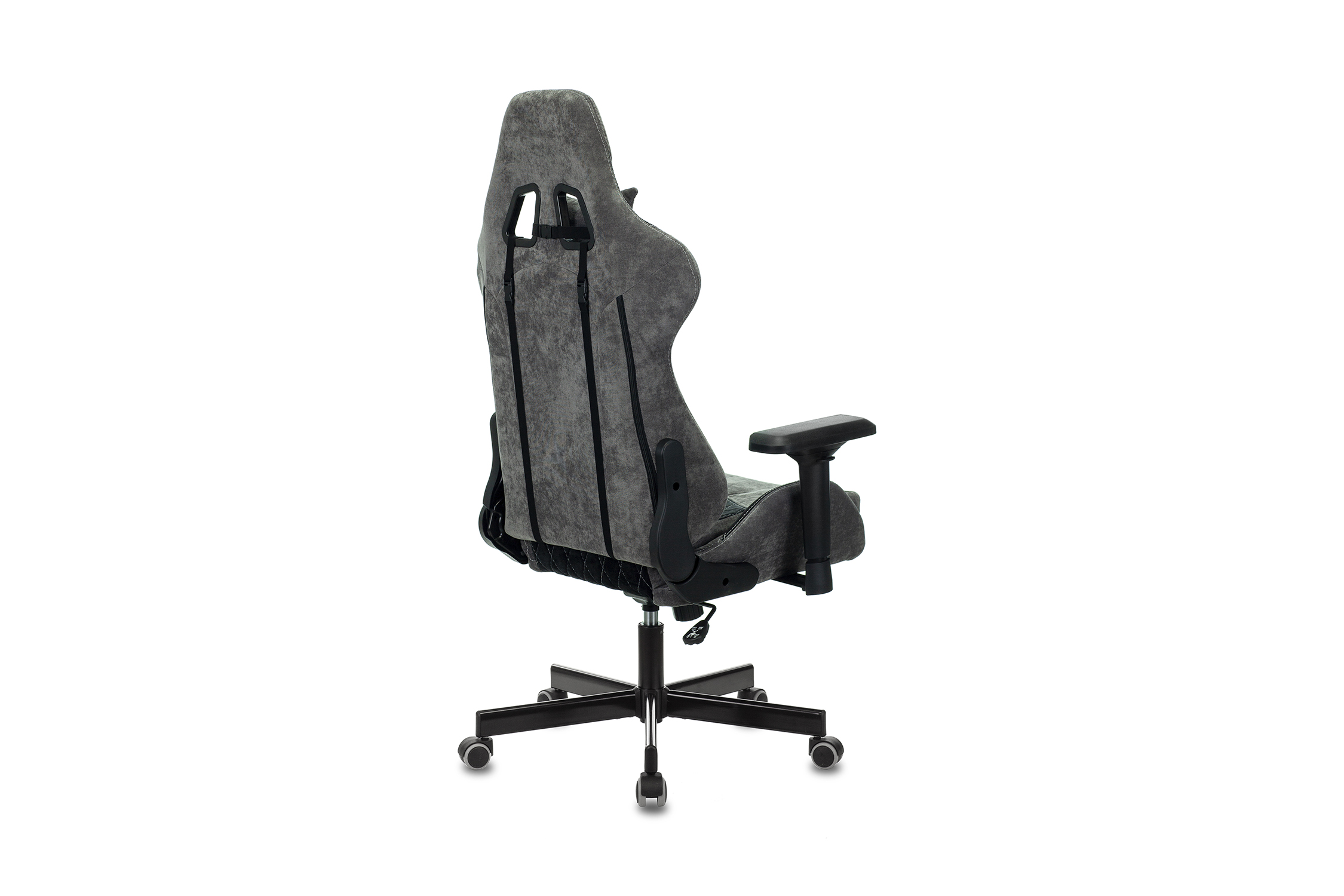 Диаметр колес - 5 см. Материал колес - с накладкой PU. Механизм качания с регулировкой под вес и возможностью фиксации в вертикальном положении. Регулировка угла наклона спинки (реклайнер 90-150 градусов). Поддержка шеи и поясницы (2 подушки). Подлокотники регулируемые пластиковые 4D. Крестовина металлическая разборная. Колеса для паркета и ламината.